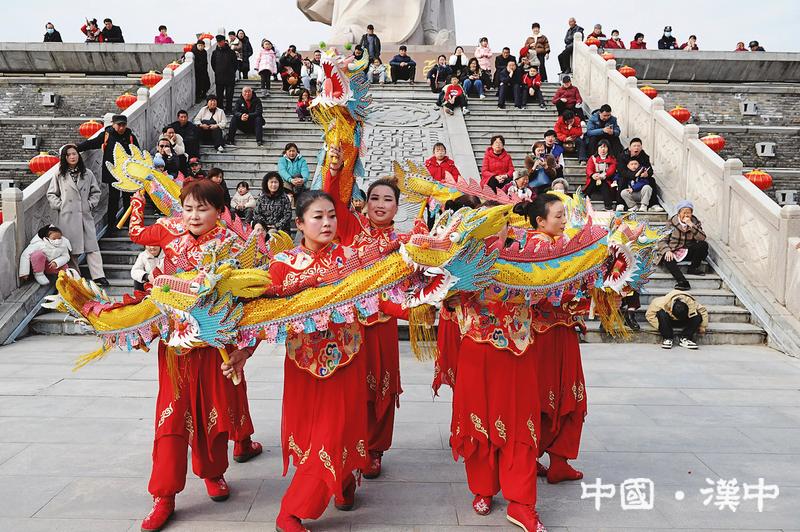 春節期間,群眾在拜將壇觀看舞龍表演 記者劉俊強攝