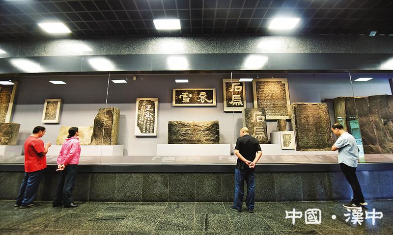游客在漢中市博物館欣賞石門十三品摩崖石刻 記者湯江攝