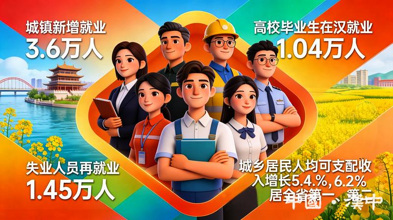 城鎮新增就業3.6萬人,高校畢業生在漢就業1.04萬人,失業人員再就業1.45萬人。城鄉居民人均可支配收入分別增長5.4%、6.2%,位居全省第一和第二。