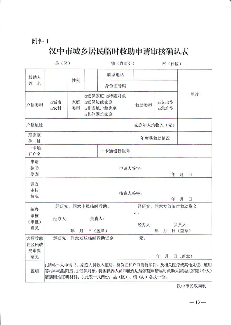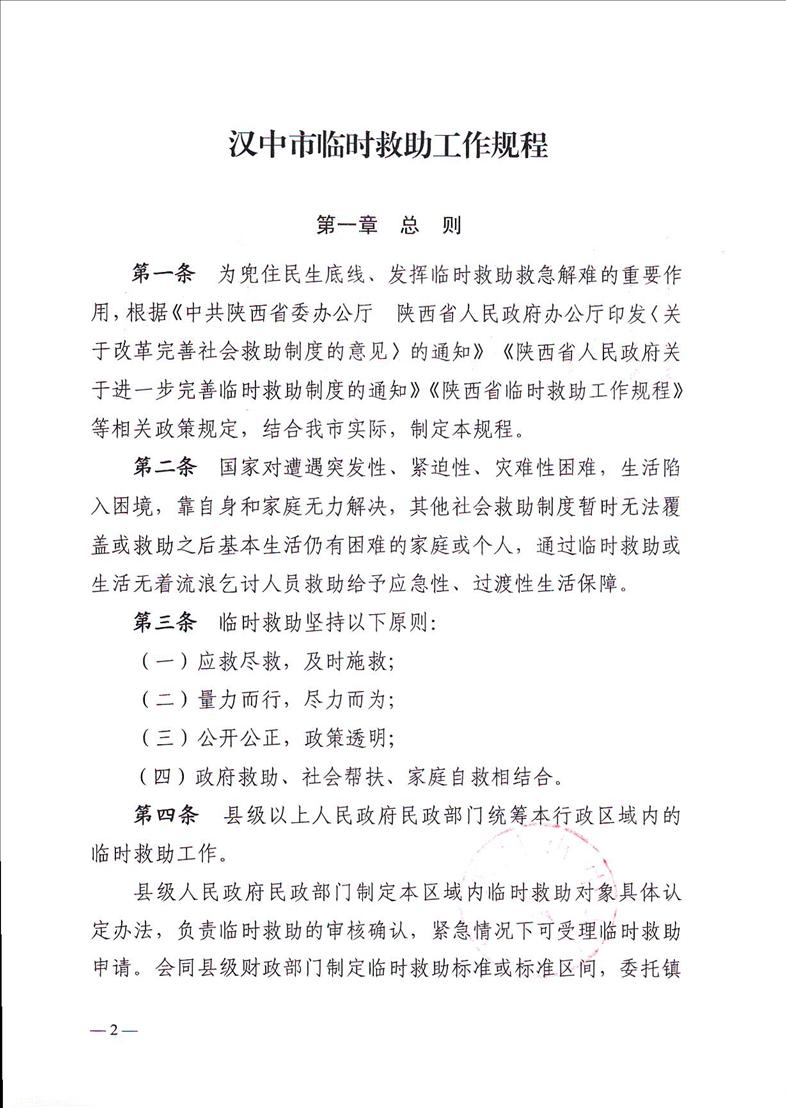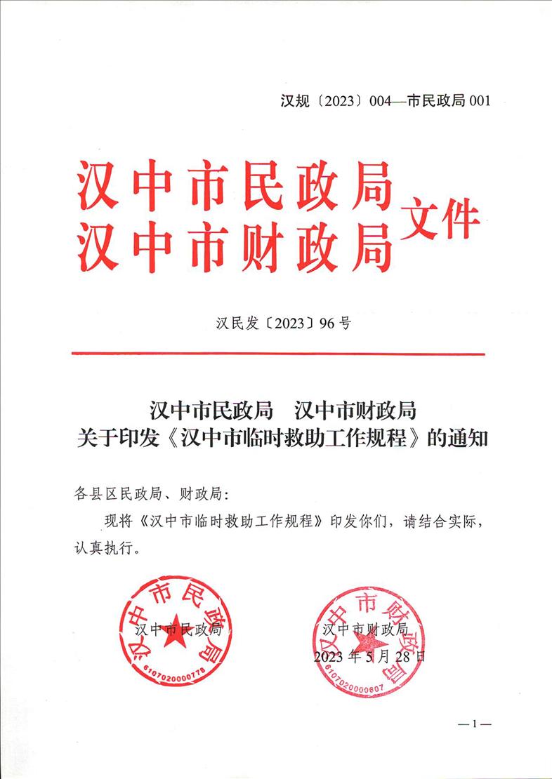 【有效】漢中市民政局 漢中市財政局關于印發《漢中市臨時救助工作規程》的通知