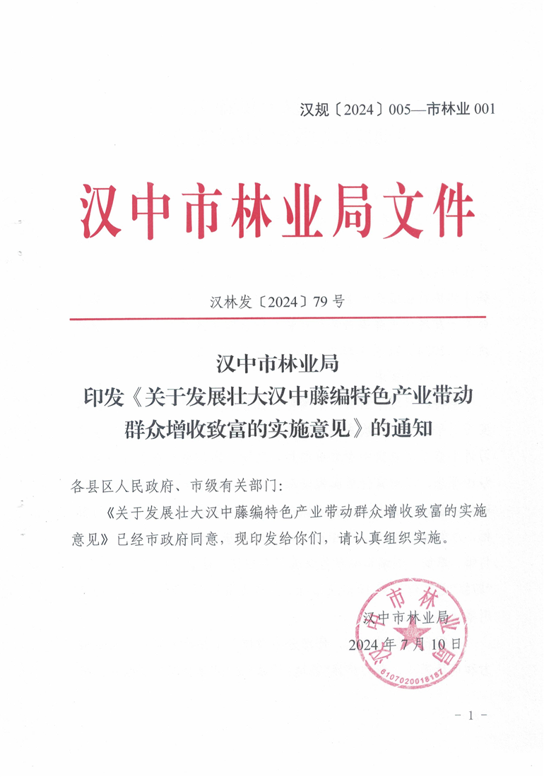 【有效】漢中市林業局印發《關于發展壯大漢中藤編特色產業帶動群眾增收致富的實施意見》的通知