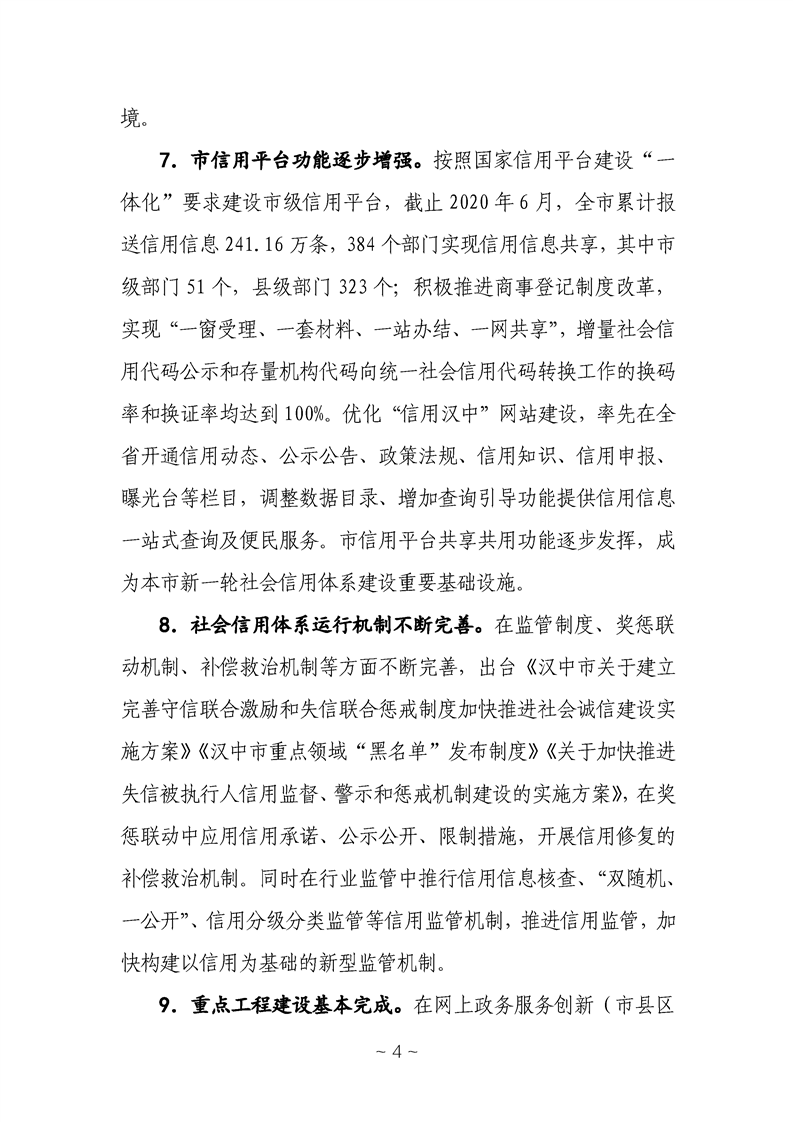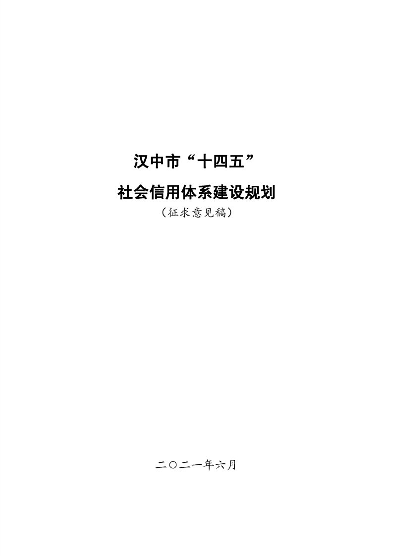 根據中省關于社會信用體系建設總體要求和《漢中市國民經濟和社會發展第十四個五年規劃和二〇三五年遠景目標綱要》等文件要求,結合我市信用建設實際,起草編制了《漢中市“十四五”社會信用體系建設規劃(征求意見稿)》,為集中民智、反映民意、凝聚民力、問計于民,科學編制好規劃,現廣泛征求社會各界意見。任何單位和個人均可在公示期內登錄“漢中市人民政府”網站查詢相關規劃內容,并以書面或電子郵件形成反饋,提出意見建議。為了便于更好的溝通和完善規劃,請在提出意見建議時,署真實姓名和聯系電話,以單位名義反映情況的應加蓋單位公章。