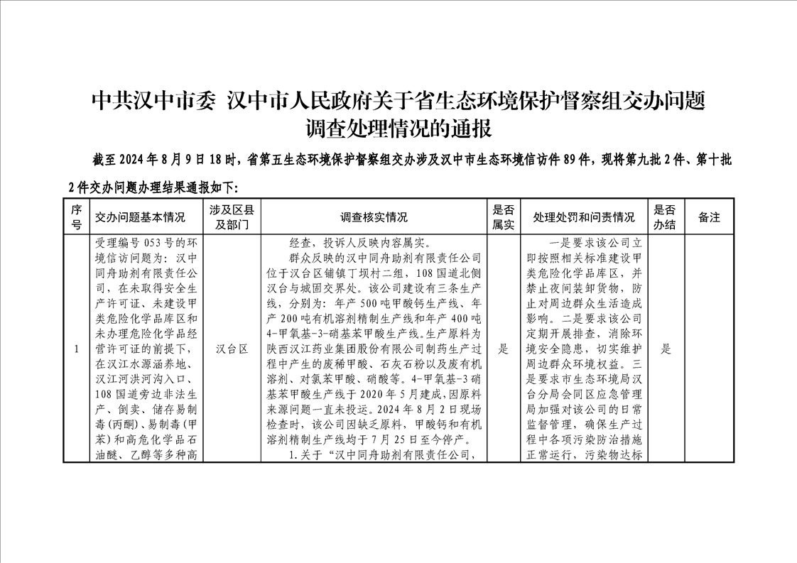 中共漢中市委 漢中市人民政府關于省生態環境保護督察組交辦問題調查處理情況的通報(第九批2件、第十批2件)