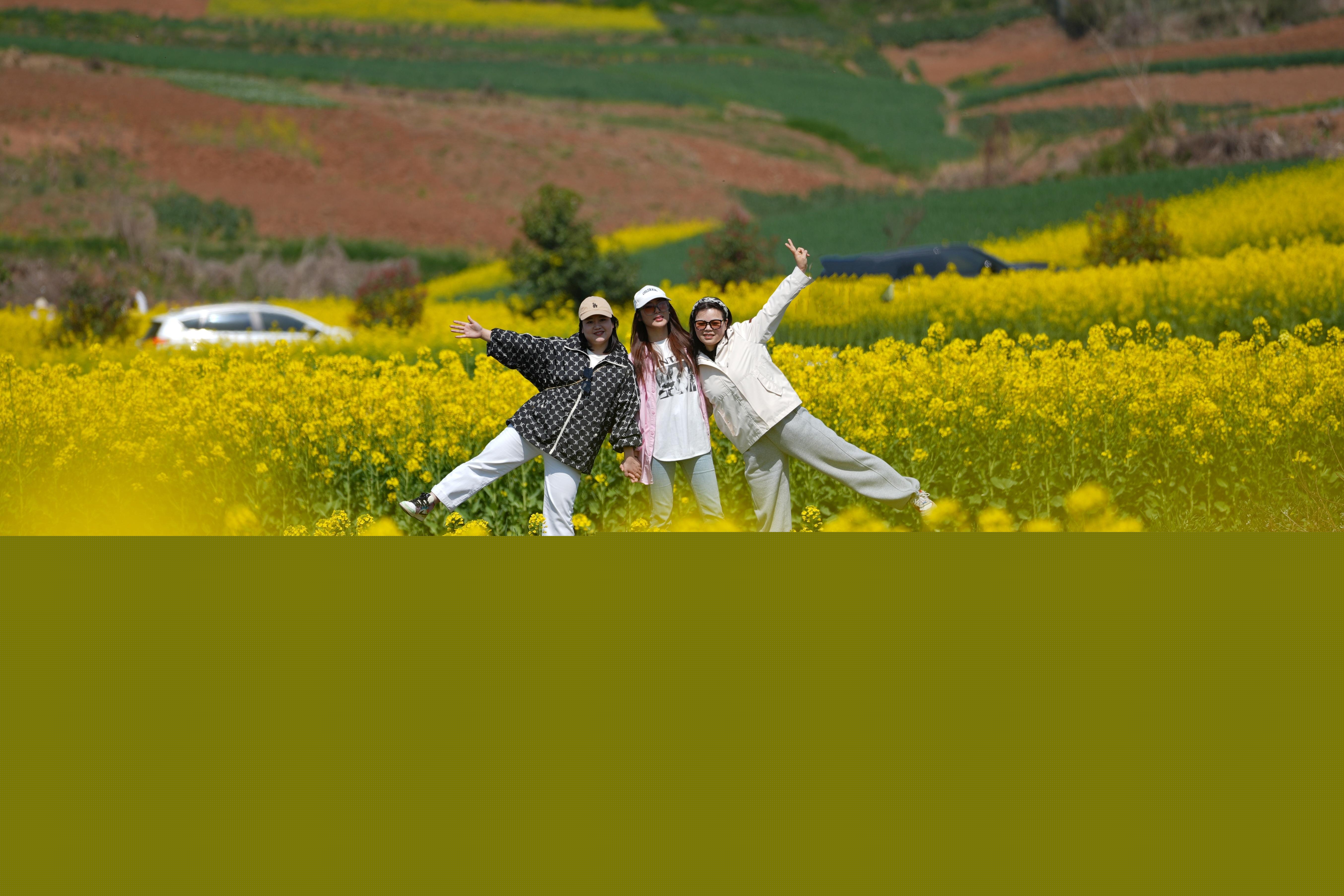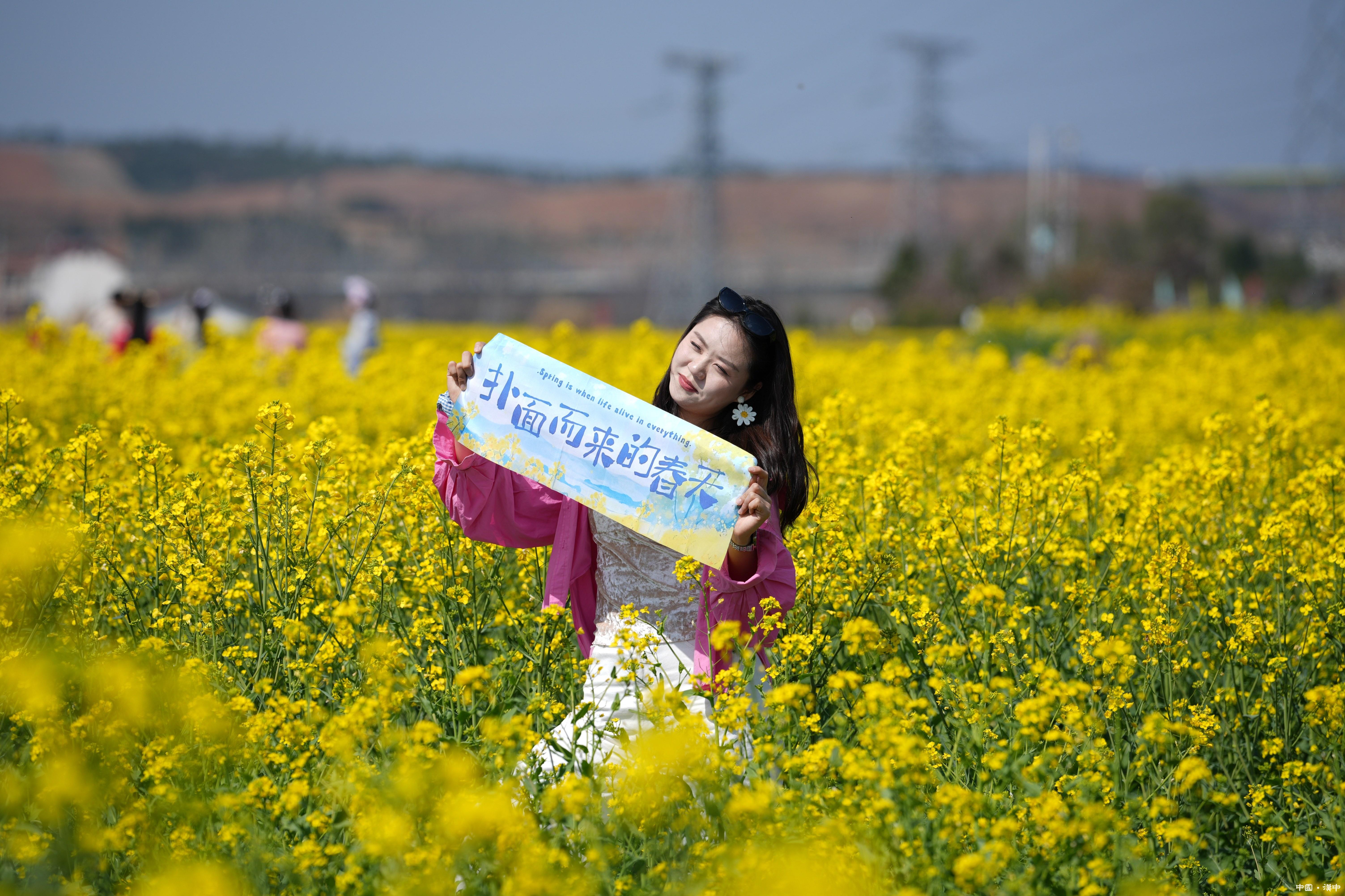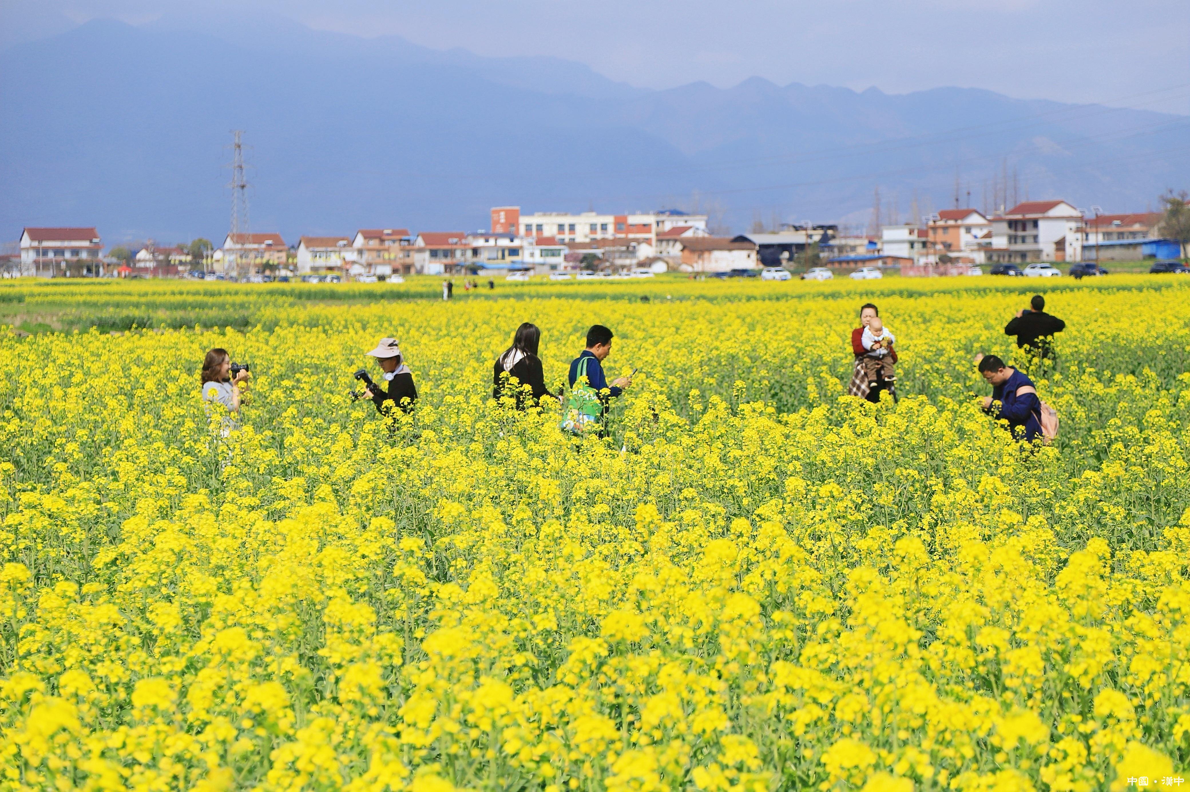 春意盎然,天漢大地鋪展成一片花的海洋,連綿起伏的田野被燦爛的油菜花染成金色,與遠處青山相映成趣,構成一幅生機勃勃的田園畫卷。游客們紛紛走進花海,或駐足拍照,或嬉戲留影,盡情享受大自然饋贈的視覺盛宴。