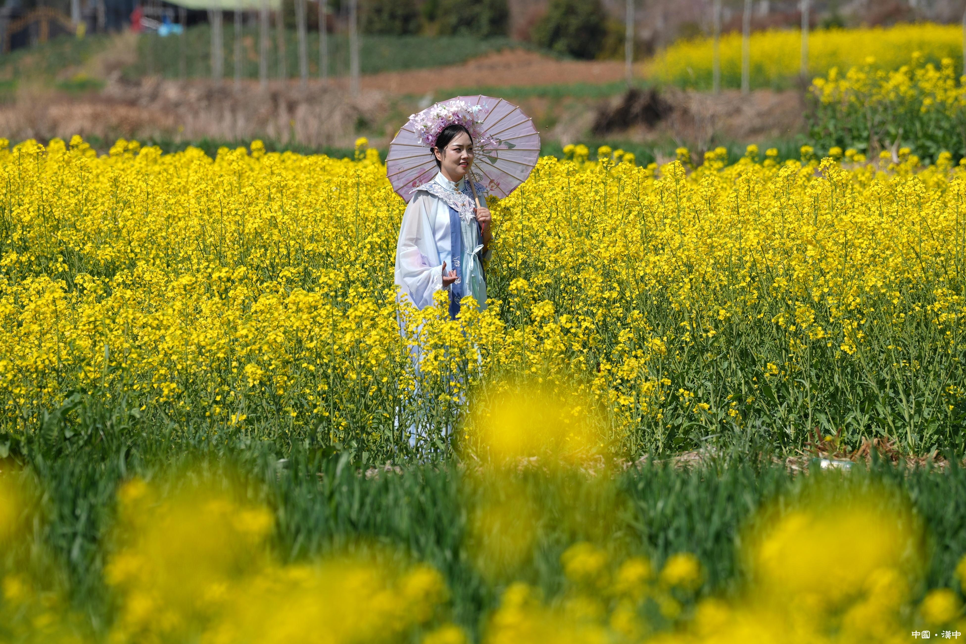 在漢臺、洋縣、勉縣等地,盛開的油菜花和美人梅吸引眾多攝影愛好者和市民前來打卡。身著漢服的女子撐傘穿行于油菜花海之中,宛如畫中人;游客漫步美人梅林,沉醉于春日的詩意;更有攝影者專注捕捉光影交錯之美,記錄下春天最動人的表情。