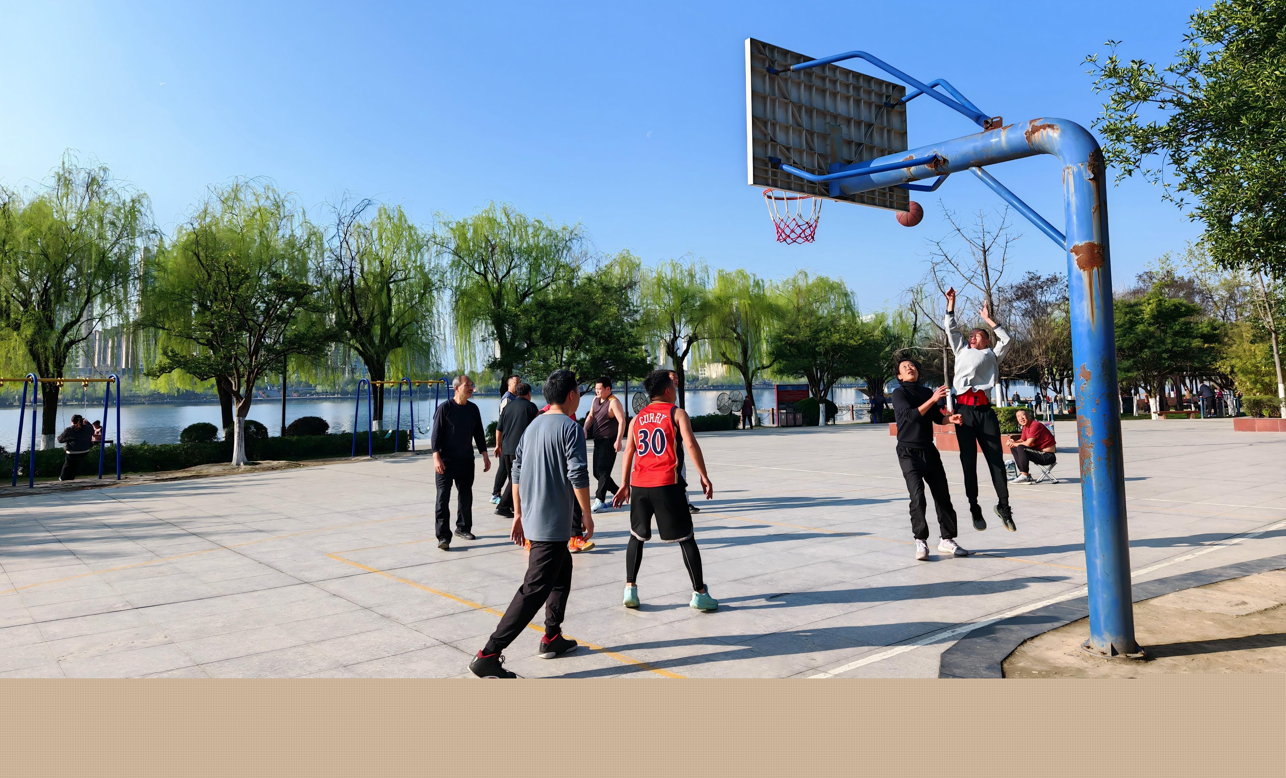 籃球場上,市民揮灑汗水,感受競技的快樂。