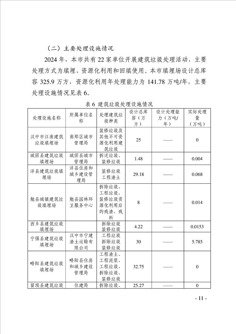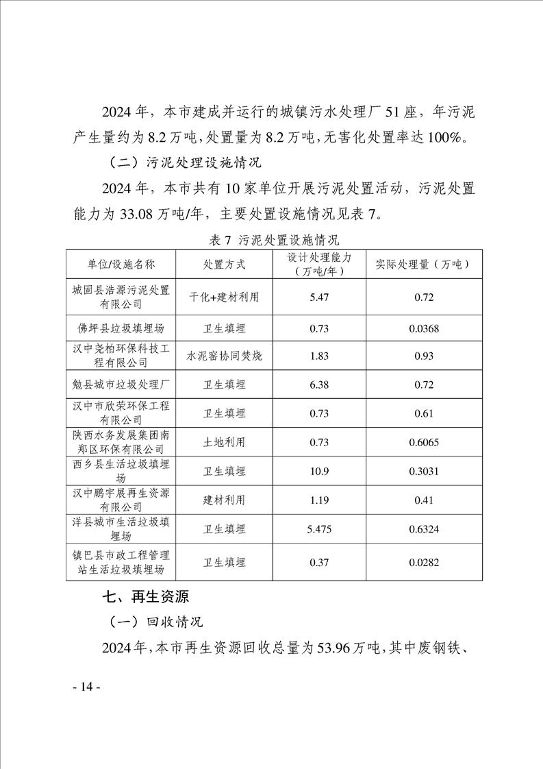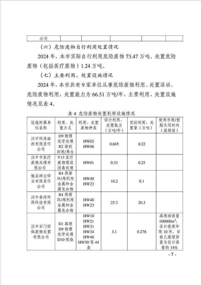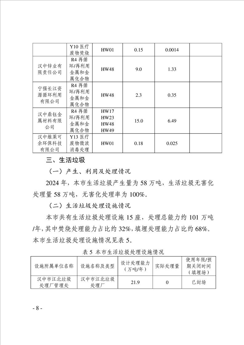 漢中市2024年度固體廢物污染環境防治信息