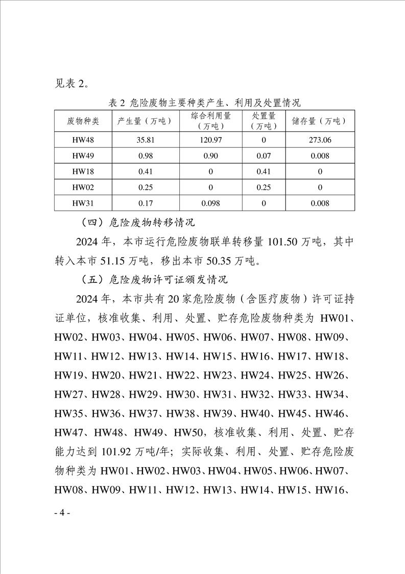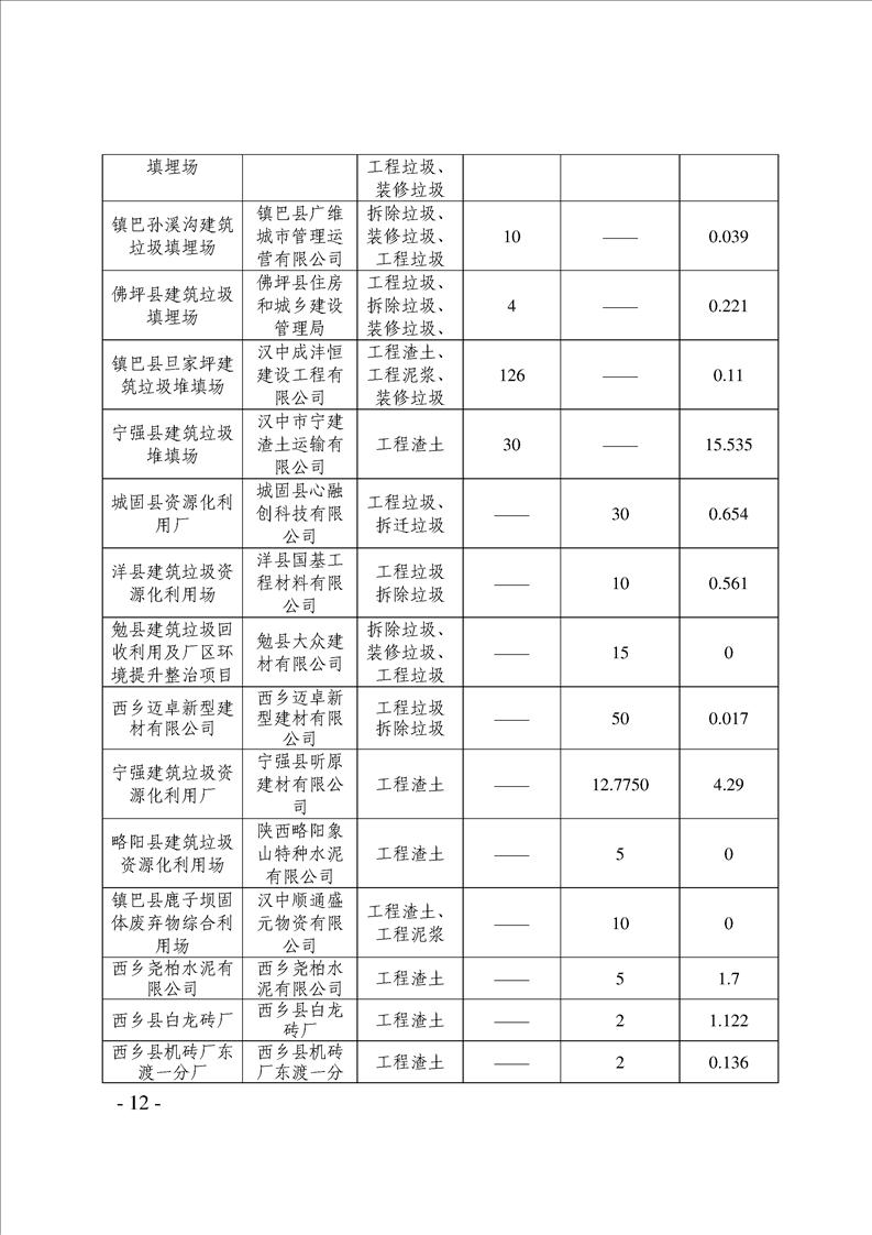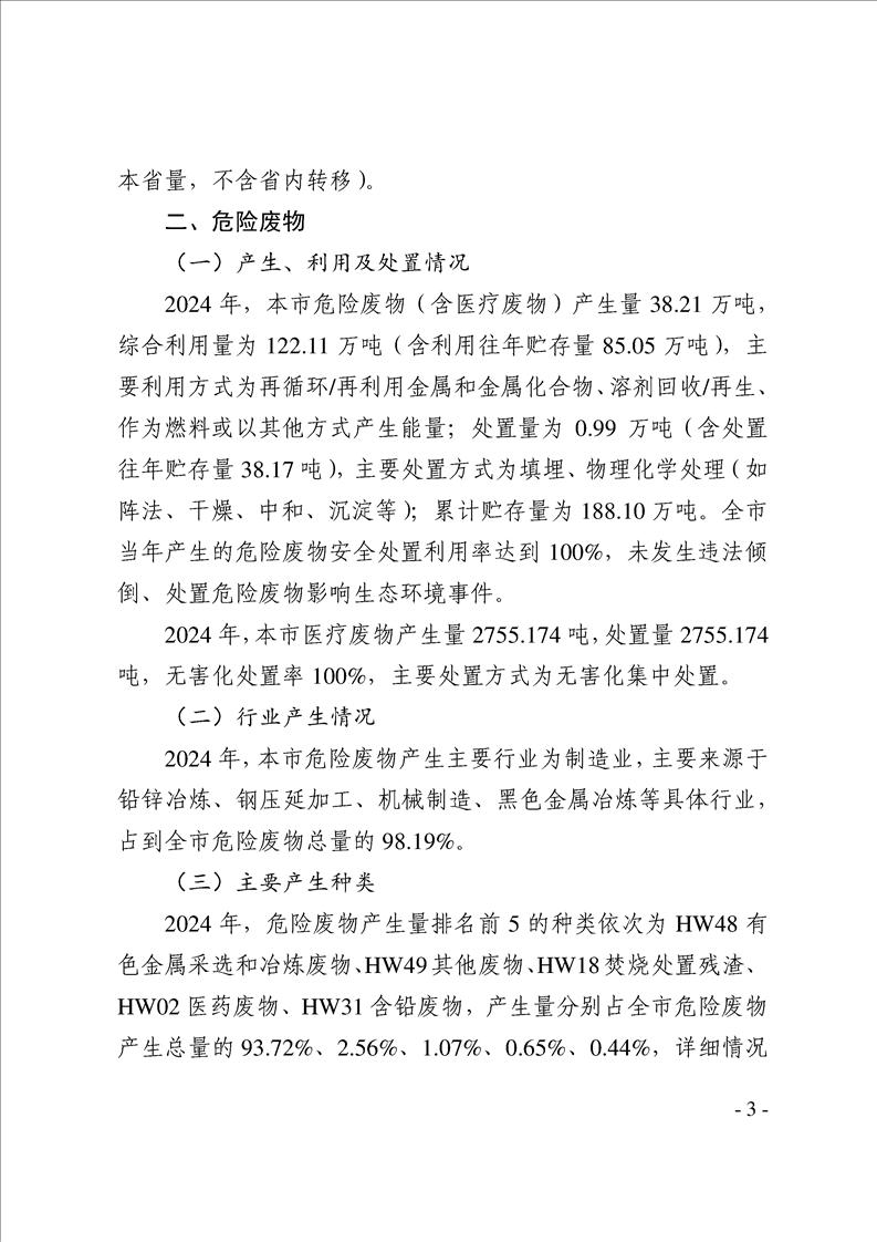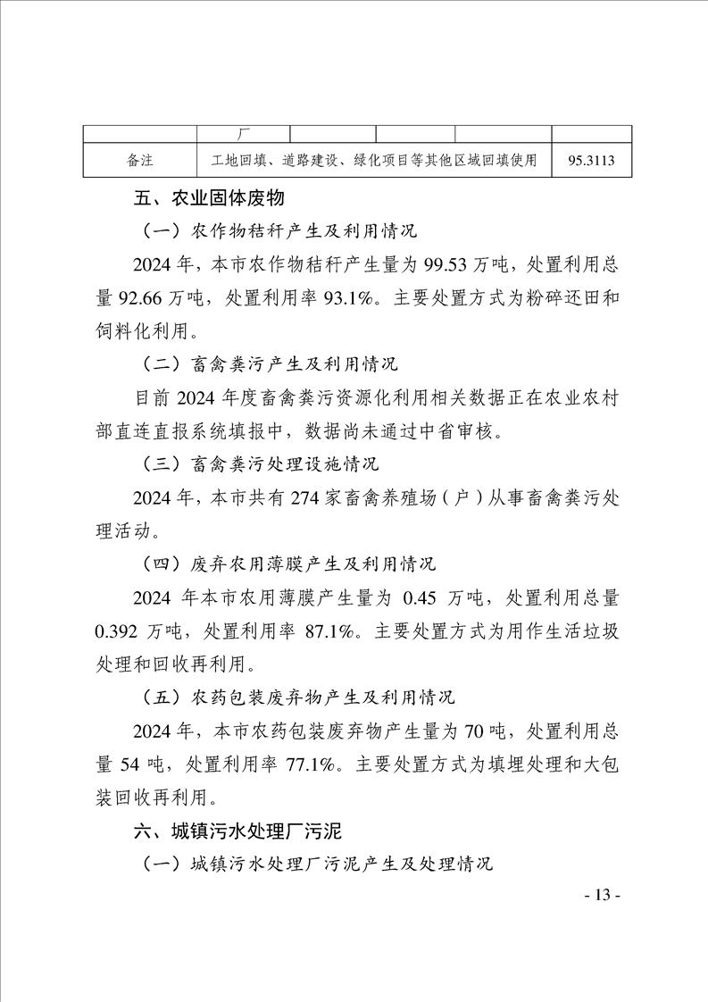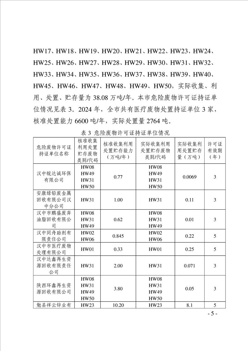 漢中市2024年度固體廢物污染環境防治信息