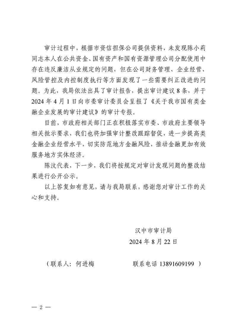 漢中市審計局對市人大六屆五次會議第217號建議的答復