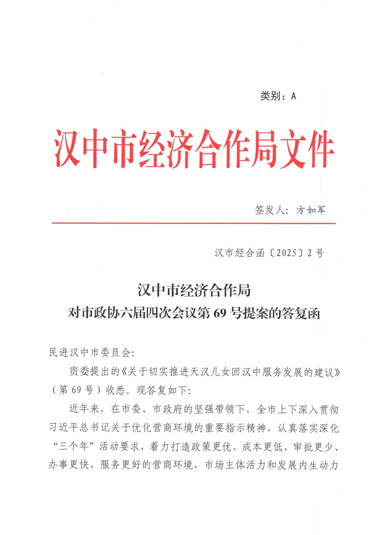 對市政協六屆四次會議第69號提案的答復函