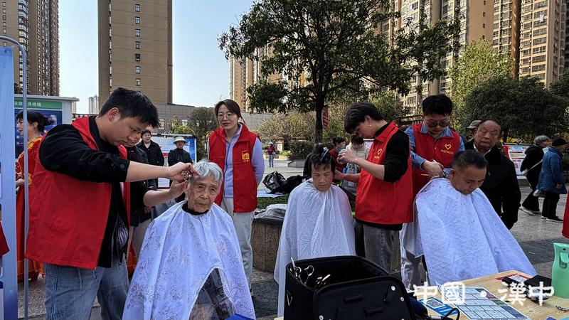 在明珠苑社區,志愿者們為居民提供免費理發服務,用行動傳遞溫暖與關愛。