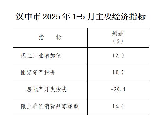 漢中市2025年1-5月主要經(jīng)濟(jì)指標(biāo)