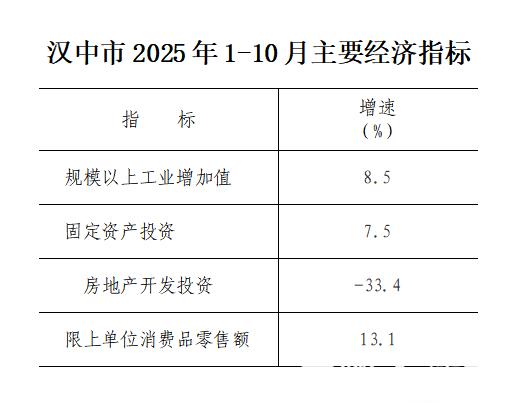 漢中市2025年1-10月主要經(jīng)濟(jì)指標(biāo)