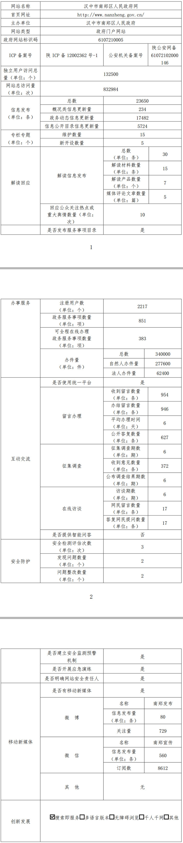 報表下載:漢中市南鄭區人民政府網站工作年度報表