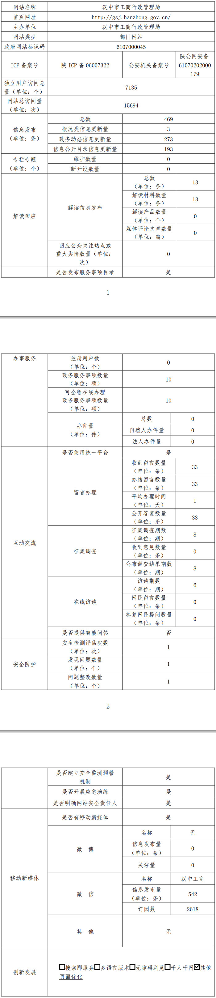 漢中市工商行政管理局網站工作年度報表(2018年度)