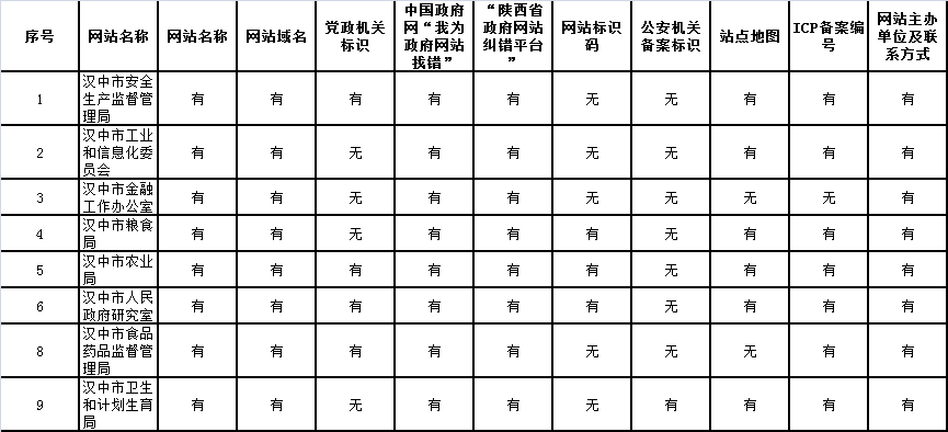 漢中市政府網站2018年度四季度抽查,尚未發現不合格網站。